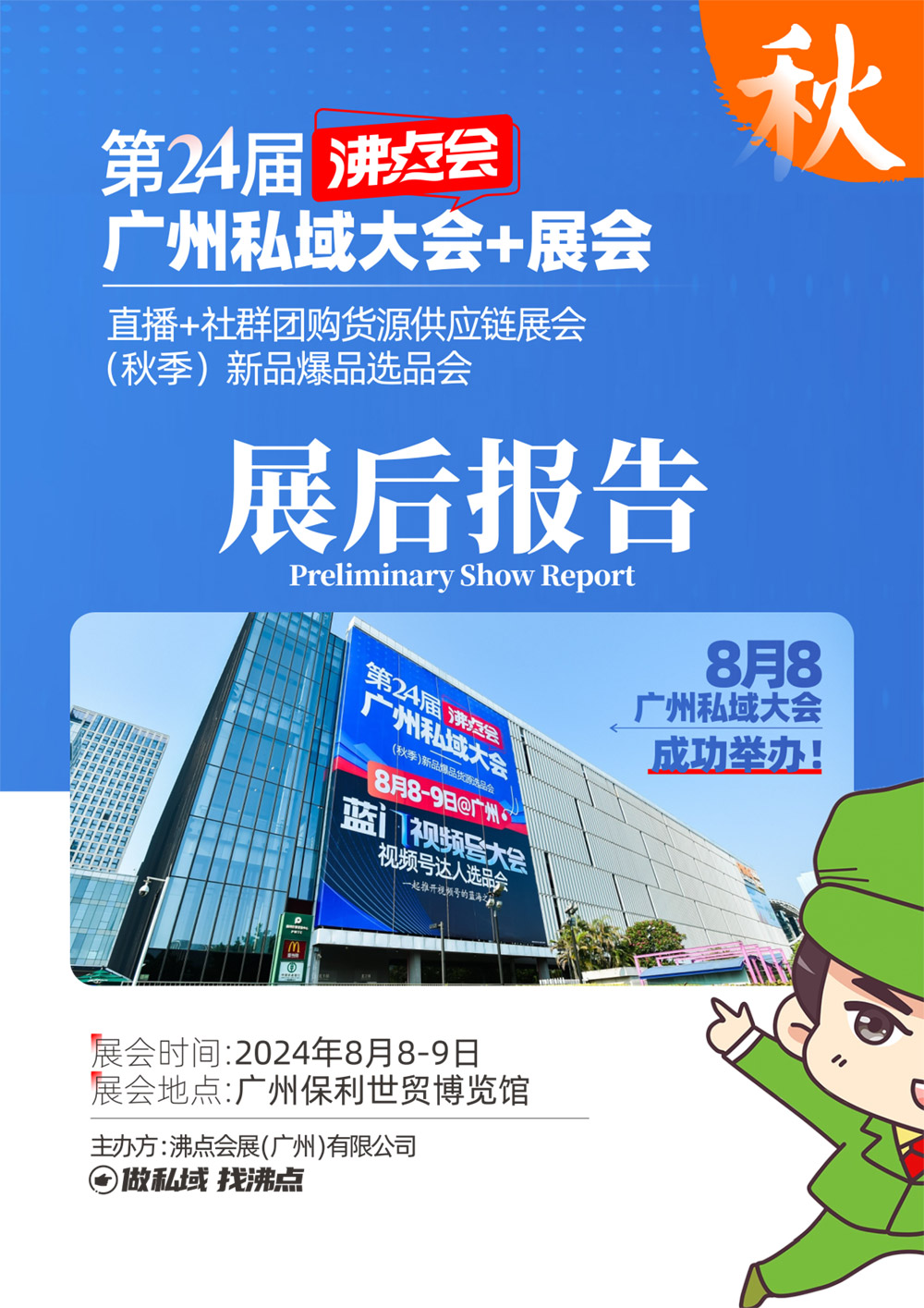 第24屆沸點會、廣州私域團長大會暨2024(廣州)直播+社群團購貨源供應鏈展覽會,于2024年8月8-9日,在廣州保利世貿博覽館圓滿舉辦!同期舉辦了2024(廣州)新品爆品貨源展覽會、2024全國地標美食博覽會以及有機食品店主選品會,本屆展