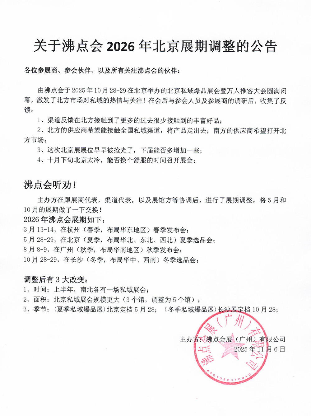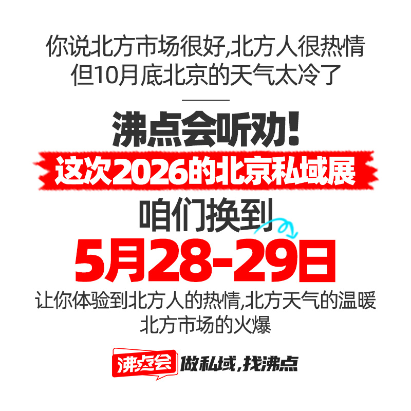終于,今天跟大家正式公布:聽勸,改期!2026年北京私域展會展期!